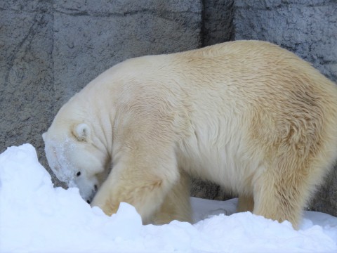 積もった雪を何度もかいて寝床造りをしていたデナリ。「できた でき...