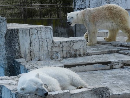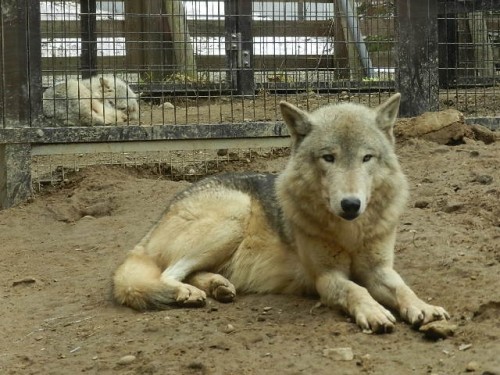 オオカミ舎のプールに水が張られましたが気温が低い日が続いているの...