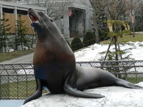 トドのラーズ(15歳メス)この日は飼育員さんがプールの水を抜いて...