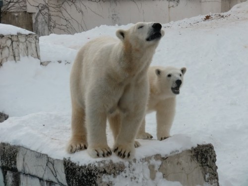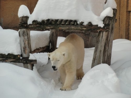 夕べはまとまった雪が積もりました。園内は除雪機を何台も使って通り...