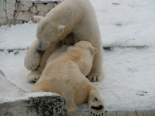 ユキヒョウ親子を見ていると後ろでリッキーの吠える声が。また始まっ...