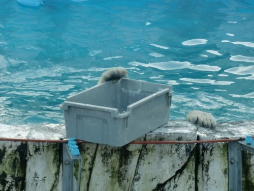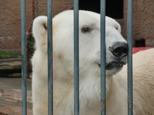 屋内に飼育員さんの気配を感じたのか、ララはさかんに扉を叩いたり齧...