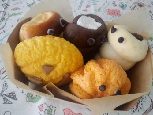 ハロウィン限定の「おばけセット」です。おばけ顔の小さいパン5個が...
