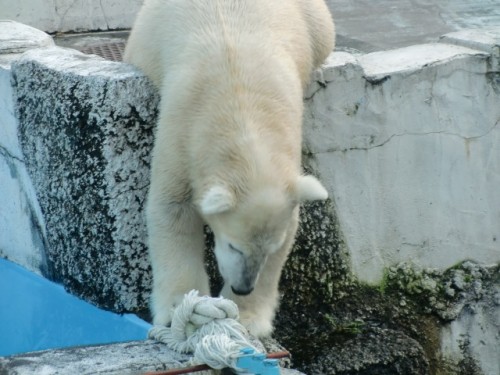 プールの淵に引っかかっているロープで遊び始めるアイラでも何かを感...