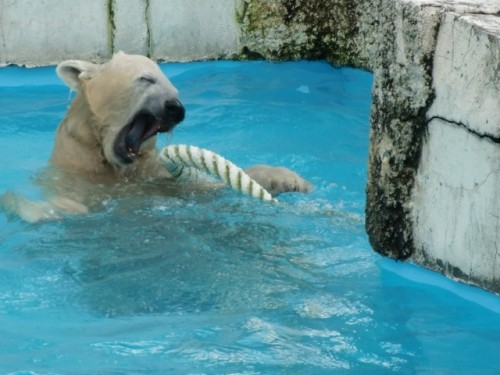 これ以上は開かないというくらい大きな口で…ロープをガブリと捕らえ...