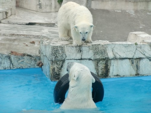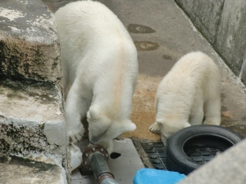 堀のいつもの場所でガシャガシャとやりだしたララとそれに付き合うお...