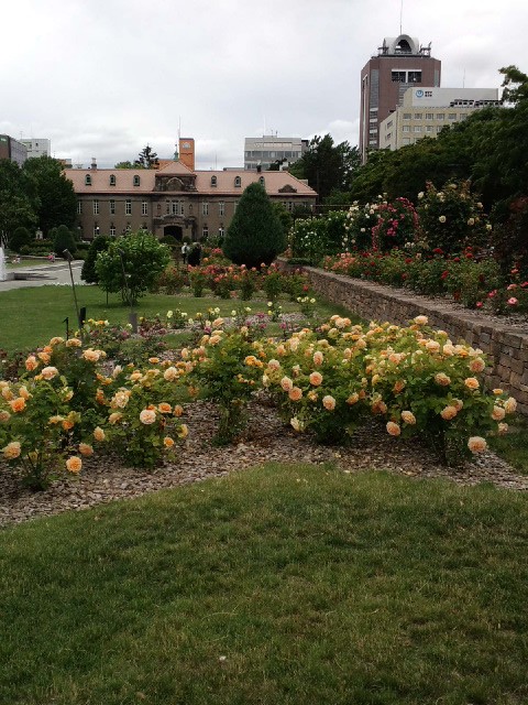 大通公園の西の端、12丁目の札幌市資料館前のバラ園。バラも品種に...