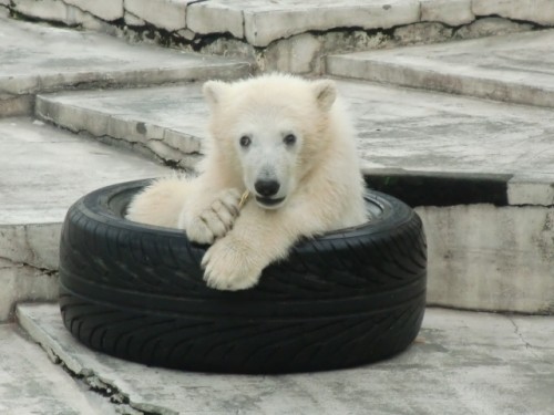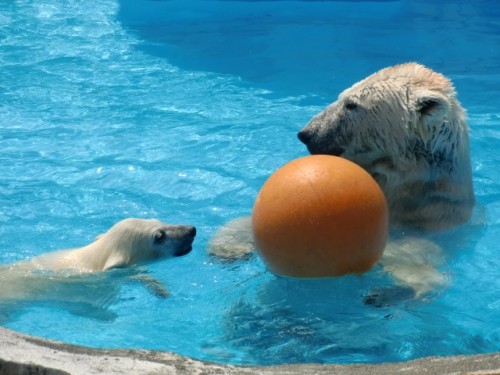 堀で授乳と昼寝をした後、プールに揃って入った親子おちびちゃんも自...