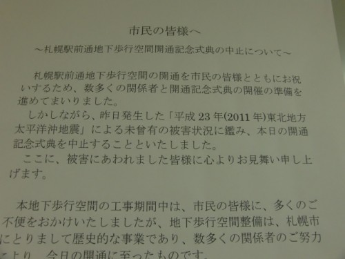 本日、札幌駅と大通りを結ぶ地下歩行空間が開通しました。記念式典は...