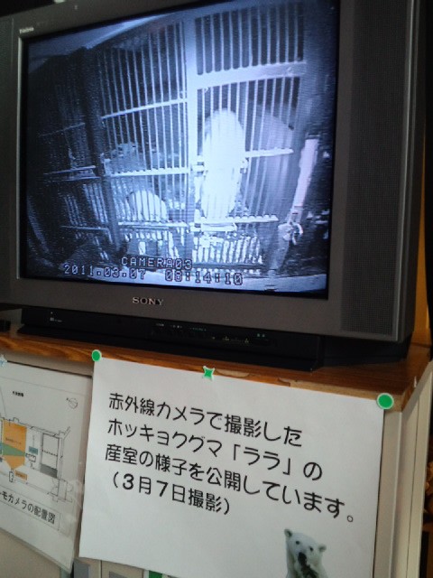 餌を食べるララの左に赤ちゃんがいます。今まではずっと産室の中にい...