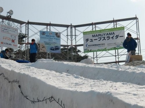スノーフェスティバル開催中の円山動物園。チューブスライダーの頂上...