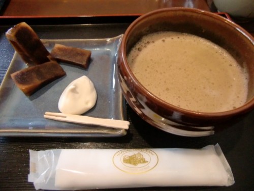札幌珈琲館のお点前珈琲セットです(750円)一見抹茶風のコーヒー...