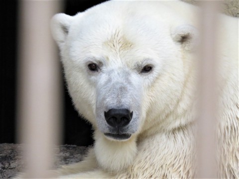 寒帯館閉鎖中のため、屋外の斜め横からしか観覧できないメイン放飼場...