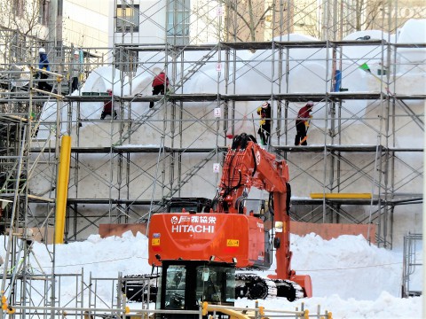 周辺市町村まで雪像用の雪を集めにダンプカーが往復し、大通会場用の...