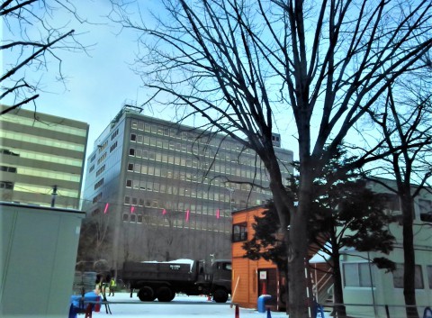 大通公園では雪まつりの雪像づくりのため、雪の搬入作業が行われてい...