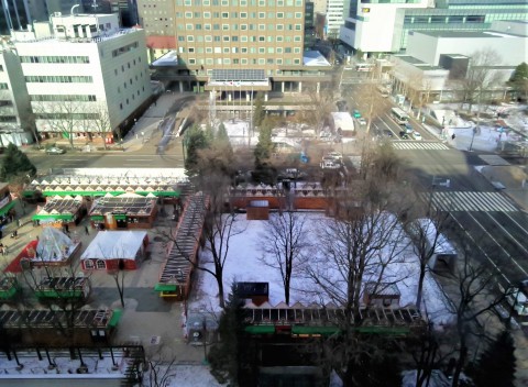 13時の気温はマイナス4.4度。芝生の上が白い程度でほとんど雪が...