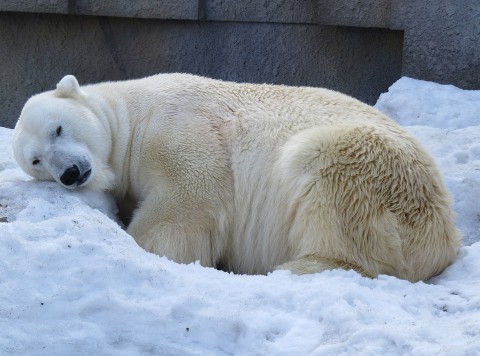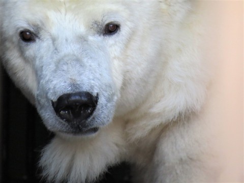 通りかかった飼育員さんを目で追うカミ。「ごはんまだですか~」カミ...