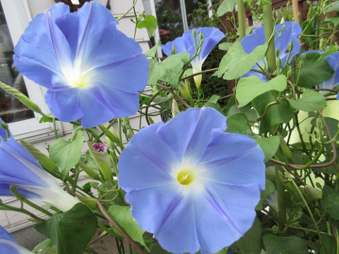 アサガオの花が太陽に照らされて元気に咲いています。アサガオを見る...