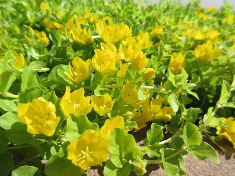 太陽に照らされて黄色い花が一段と目立ちます。リシマキアという宿根...