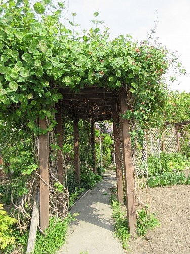 園内にはツキヌキニンドウのトンネルがあります。もう少しでニンドウ...