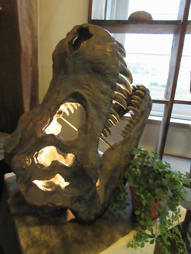 ライトに照らされて、迫力満点の恐竜の化石の置物です。¥22.00...