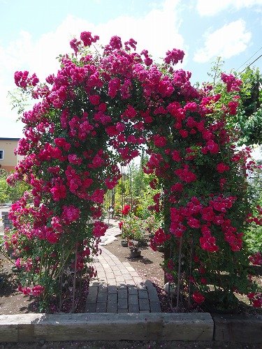 つる性のバラ、キングローズが見事に咲いています。バラのアーチにし...