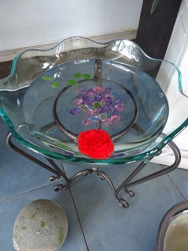 毎日暑い日が続いているので、水鉢を置いて涼しさを演出してみました...