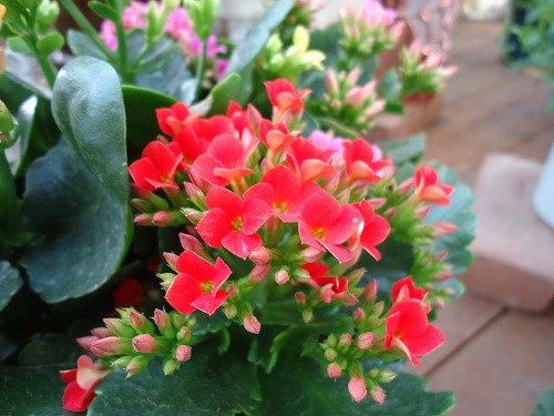 トップ画像はカランコエというお花です。ひとつの鉢に、赤・ピンク・...