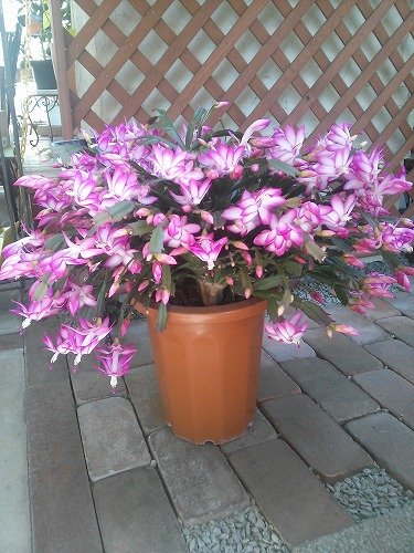 ジャコバサボテンが綺麗に咲いています。まだまだ蕾も沢山ついていて...