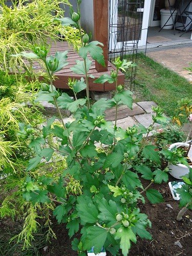 ムクゲです。もう少ししたら咲いてきそうですよ。この時期お花が少な...