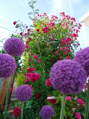 昨日撮影しました、とっておきの一枚です。バラとアリウムがとてもき...