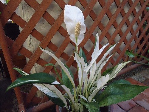 最近人気の斑入りスパティです。葉が綺麗なので、お花が終わっても葉...