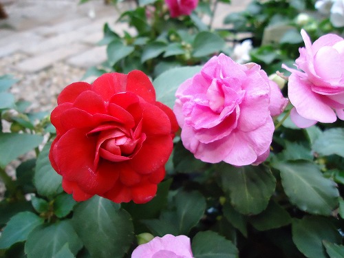 八重咲きインパチエンス、バラみたいな咲き方で、とっても可愛いです...