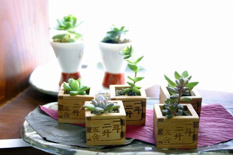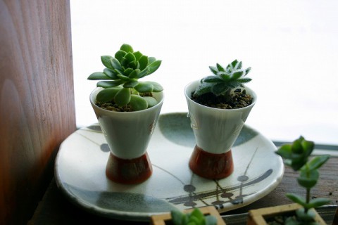 おちょこに入った多肉植物、1ヶ¥200-(税込、お皿別)残りわず...
