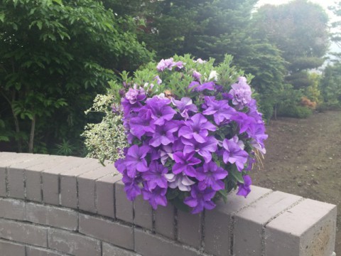 ハンギングバスケット。通常は壁に掛けたり、ラチスフェンスなどに掛...