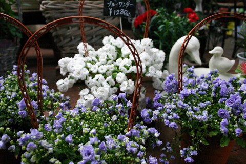 取っ手カゴもかわいいカンパニュラブルーワンダー入荷しました。¥1...