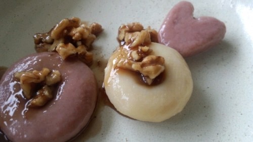 久々に「つぶつぶ(雑穀)スイーツ」クルミ味噌だれだんご。オフホワ...