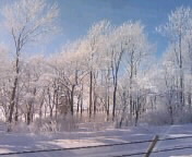 札幌へ向かう途中、木がぜ~んぶ真っ白。こんなのは私見たことないよ...
