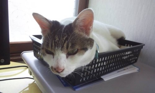 ネコのルナ君、昨日もご出勤。ひとりで静かに部屋で過ごしていてえら...