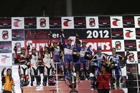 表彰台のライダーさん達が手にしています♪今年のレースは八時間めい...