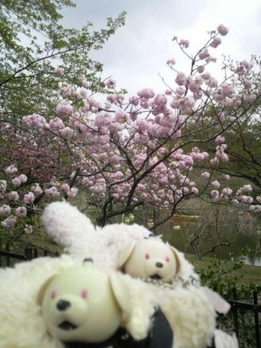 隣のフラワーパークの八重桜が満開キロル君はゆっくり歩いていました...