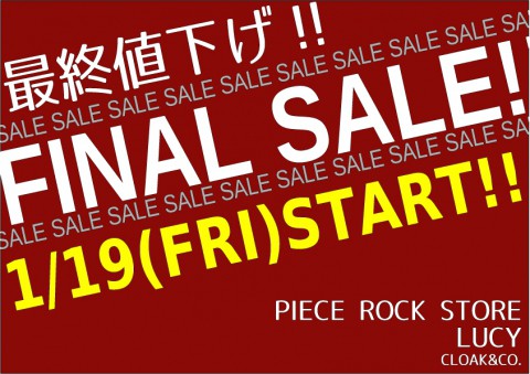 皆さんこんにちは♪♪19日から開催の最終SALE!!!!大変ご好...