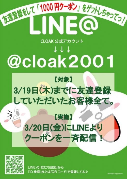□*■*□*■*□*■*□CLOAKLINE@友だち限定キャンペ...