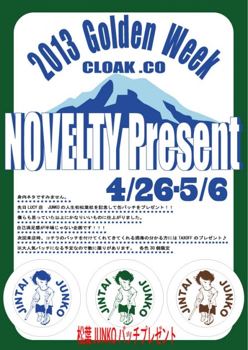 JINTAI JUNKO缶バッチ届きましたーーー!!!!ご来店の...