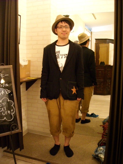 flata【8分丈パンツ】をご試着しているのは??何と男の子ー!...