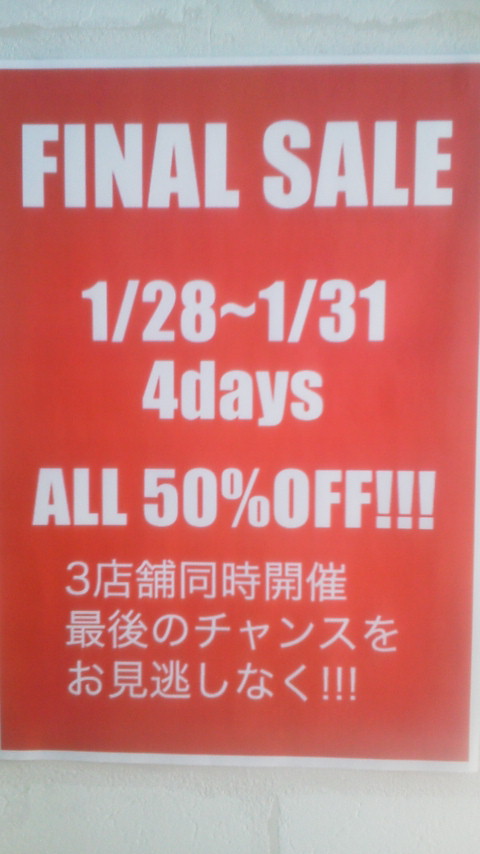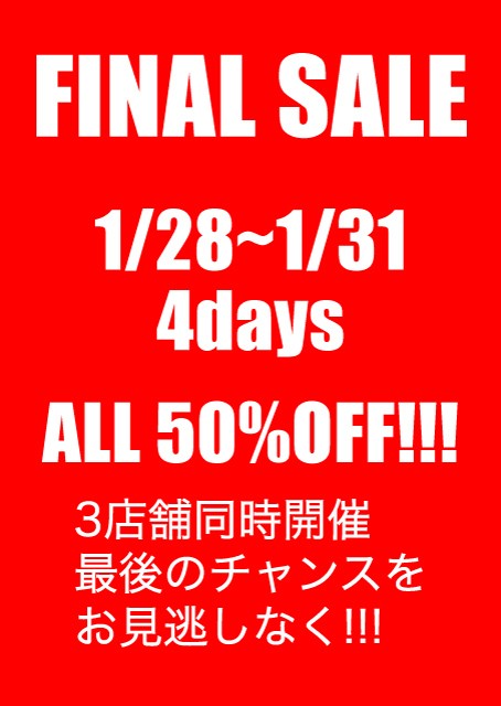 いよいよ『FINAL SALE』突入です!!!全品50%OFFで...