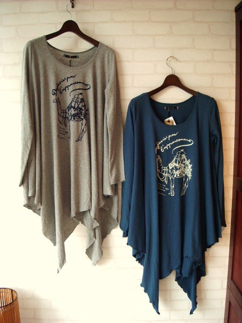 【romarquee,秋新作らくだフロキープリントフレアーチュニ...