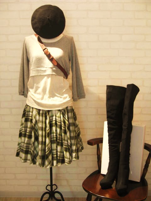 千鳥柄と無地のキャスケットです。フワッとしたシルエットが女性らし...