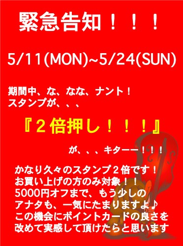 緊急ですが、明日からこんな事やってしまいます!『スタンプ二倍押し...
