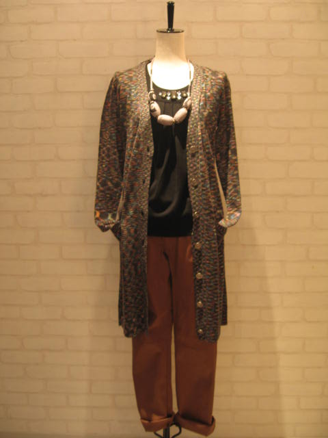 『Suave:MIXロングカーデ』MIX柄が特徴的で目を引くデザ...